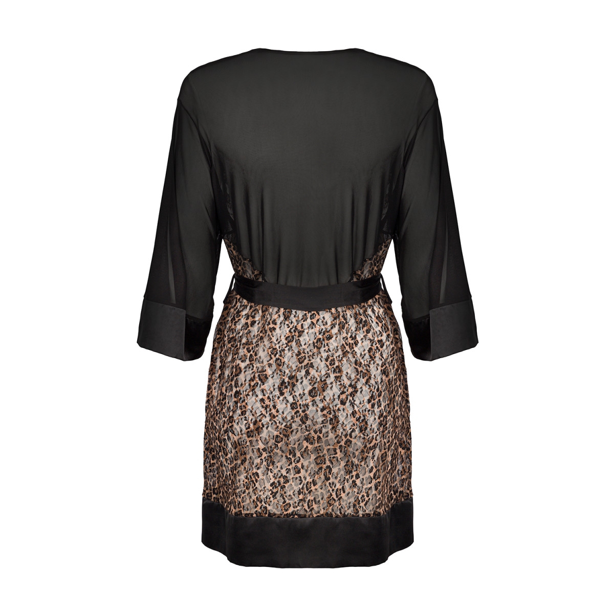 Ein beazubernder Kimono im Leolook, teilweise leicht transparent.
